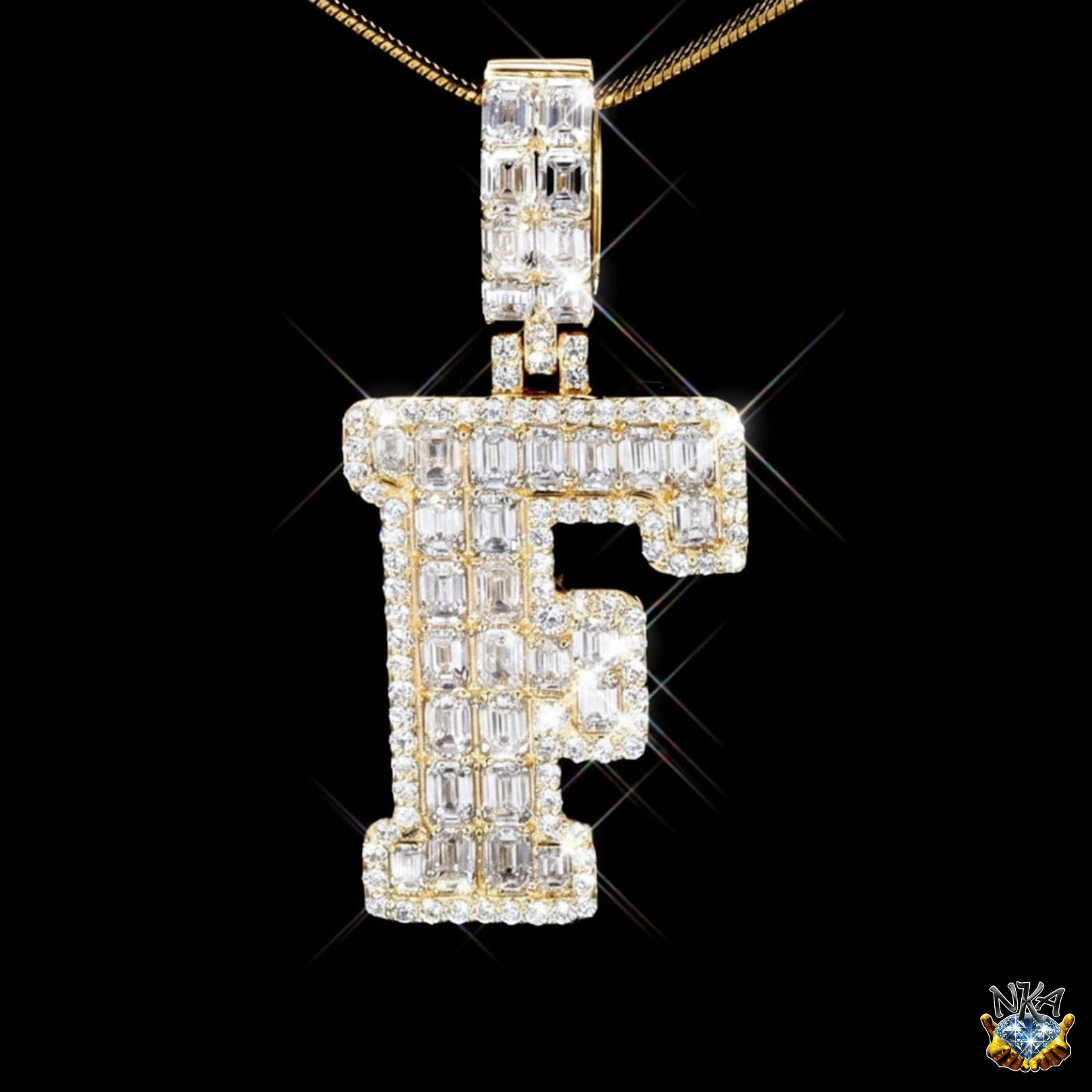 Pendentif « Initiale F » en Or Jaune 14K – Diamants Lab Grown (3.63 cts) | 25P8016
